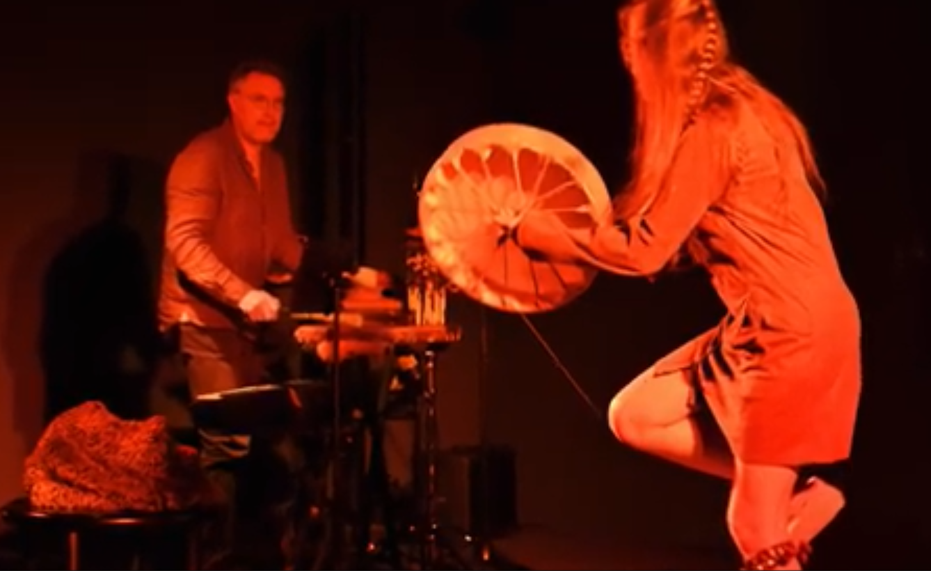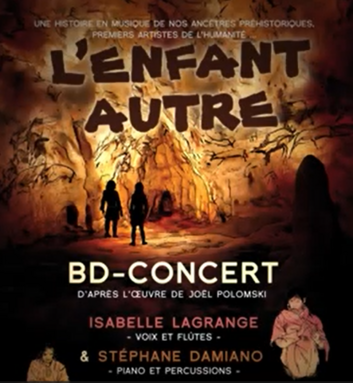 Deux musiciens poly-instrumentistes accompagnaient en direct la BD projetée sur grand écran : Isabelle Lagrange à la narration, au chant, aux flûtes (en os et en bois) et aux percussions (bois et peau naturelle), et Stéphane Damiano au clavier et aux percussions.