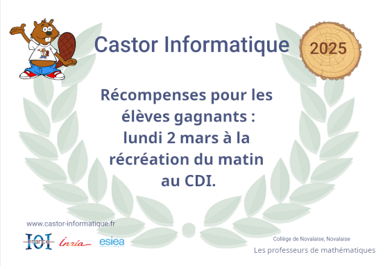 Les récompenses seront données aux élèves gagnants, ce lundi 2 mars à la récréation du matin au CDI.